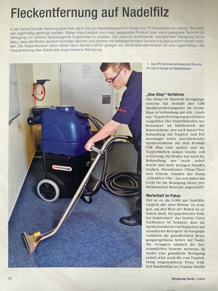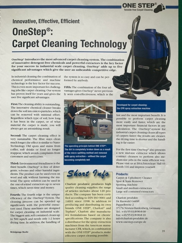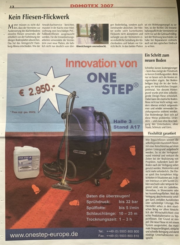 Teppichreinigung mit OneStep® Artikel und Anzeige (im Jahr 2007) in Fachzeitschriften
