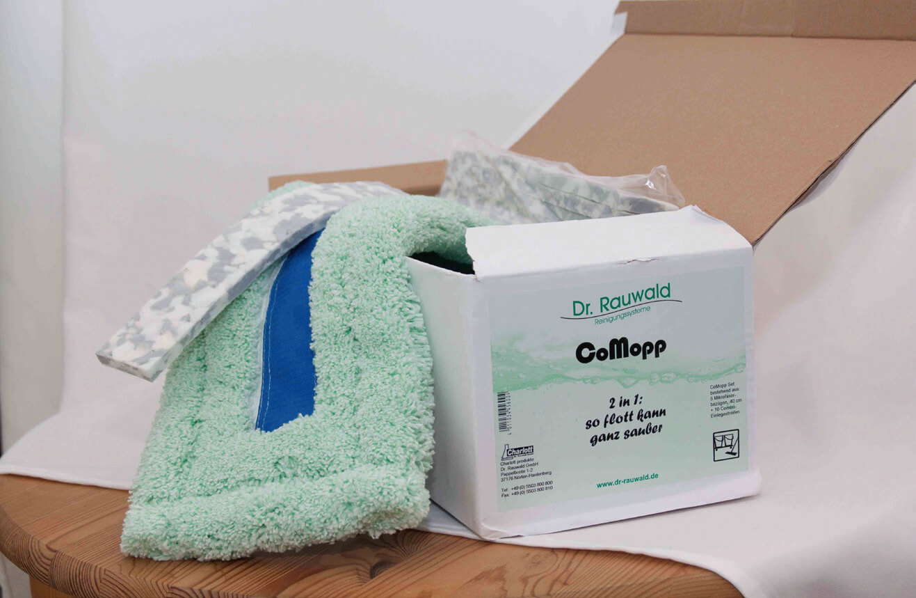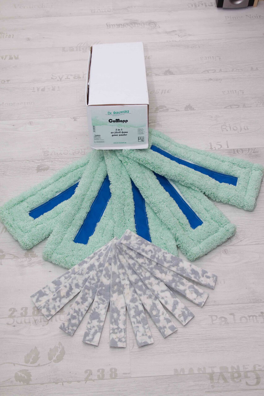 Mit dem CoMopp reicht ein Arbeitsgerät. Man hat einen hochwertigen Wischmopp aus saugfähiger Mikrofaser, der in Deutschland hergestellt und gut verarbeitet mindestens 300 Wäschen widersteht.