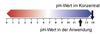 Als Vorreiniger mit der 500 fachen Menge Wasser verdünnen, dann Gegenständeeinweichen lassen. Gelöste Rückstände mit hartem Wasserstrahl oder mittels Bürste entfernen. Mit klarem Wasser nachspülen. Nicht zur Reinigung von Bunt- und Leichtmetallen geeignet. Zur Maschinereinigung Dosieranleitung des Maschinenherstellers beachten. Unbedingt Schutzkleidung und Schutzbrille tragen!